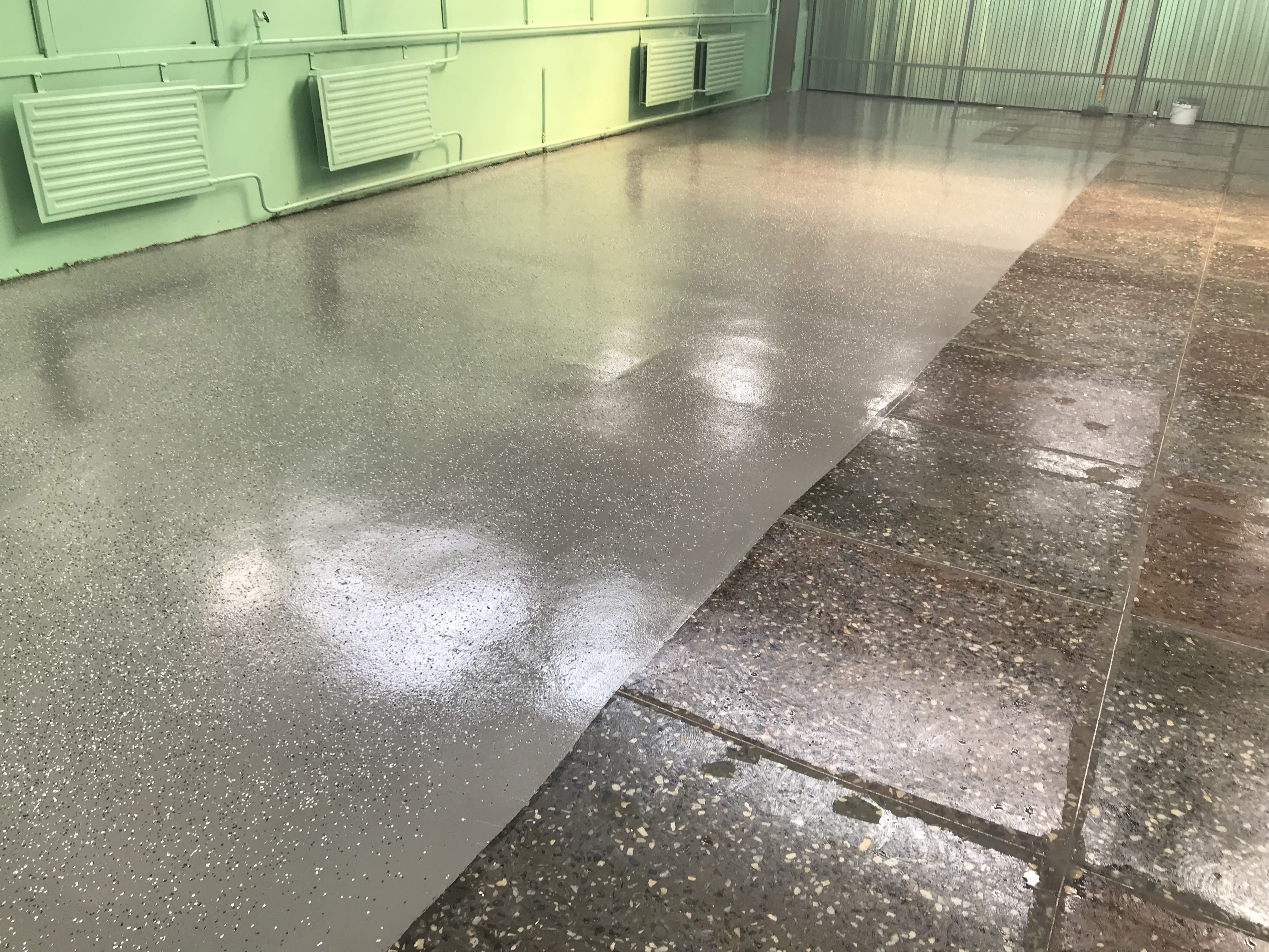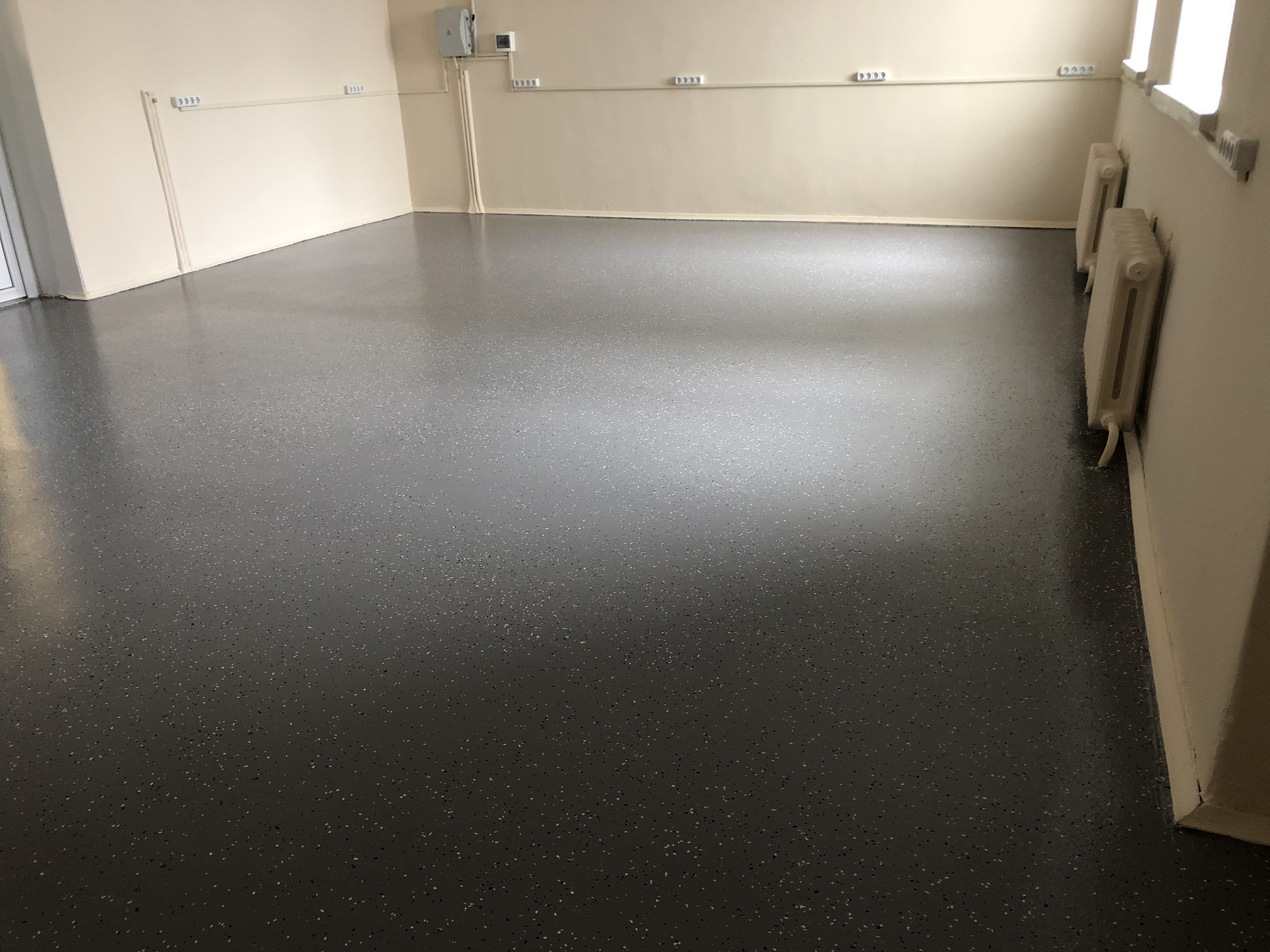 4. Герметизация и гигиеничность. Сплошной беспористый слой полностью исключает пыление бетона, упрощает влажную уборку и отвечает строгим санитарным нормам.